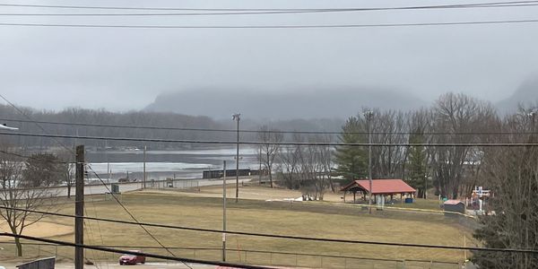 Here is the beautiful view of the mighty Mississippi from our upper deck on a dreary day…